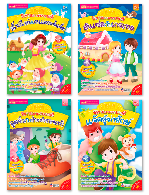 นิทานภาพระบายสี สนุกกับการระบายสี พัฒนากล้ามเนื้อมือ เพิ่มคลังคำศัพท์ภาษาอังกฤษ และฝึกสมองด้วยเกมที่สร้างสรรค์ ในชุดประกอบไปด้วยหนังสือภาพระบายสี 4 เล่ม