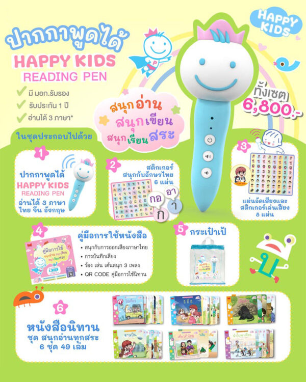 1. ปากกาพูดได้ HAPPY KIDS READING PEN อ่านได้ 3 ภาษา (ไทย- อังกฤษ-จีน) 1 ด้าม พร้อมสาย USB